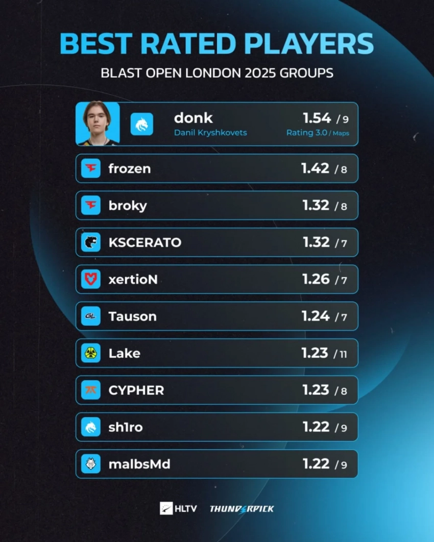 Donk возглавил рейтинг квалификации BLAST Open Fall 2025 по Counter-Strike 2
