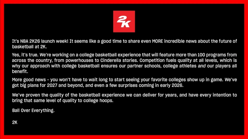 В четь релиза NBA 2K26 в 2K Games анонсировали новый симулятор студенческого баскетбола