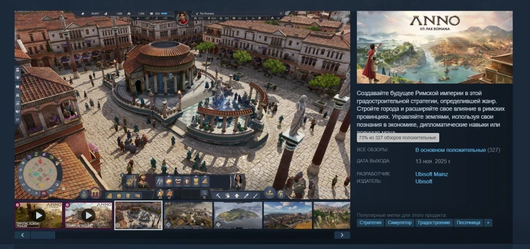 Anno 117: Pax Romana получила «в основном положительный» рейтинг в Steam