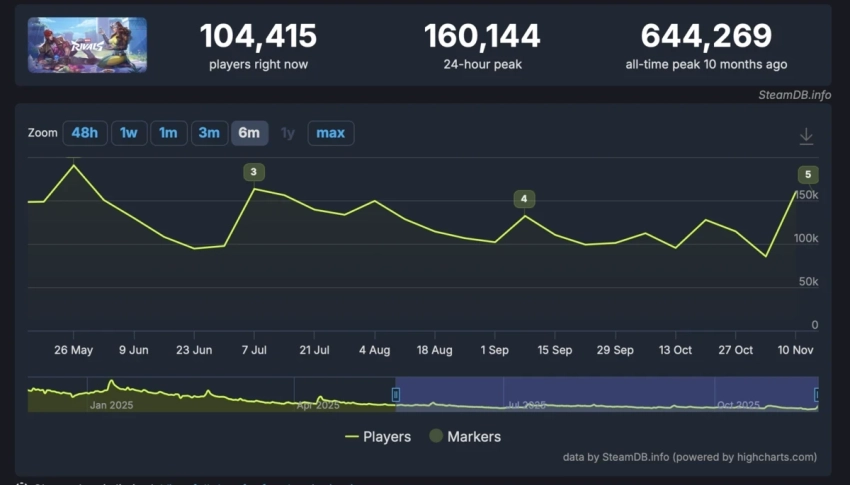 Впервые за пять месяцев пик онлайна Marvel Rivals в Steam вырос до 160 тысяч