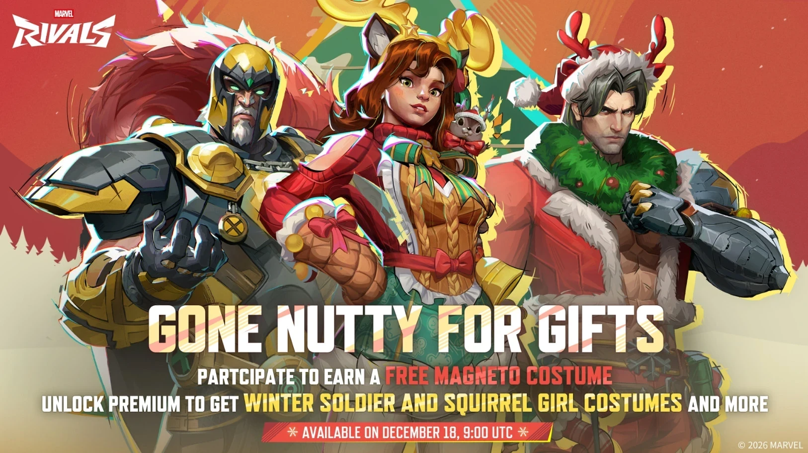 Событие «Пушистая раздача» предлагает бесплатно получить чёрно-золотой костюм для Магнето. Нужно завершать задания ивента и зарабатывать жёлуди, за которые открываются украшения на ёлочке. Под каждой игрушкой и скрываются различные награды. А вот в премиальной версии, где нет ограничения по времени, можно отыскать праздничные костюмы для Девушки-белки и Зимнего солдата. Событие продлится до 16 января.