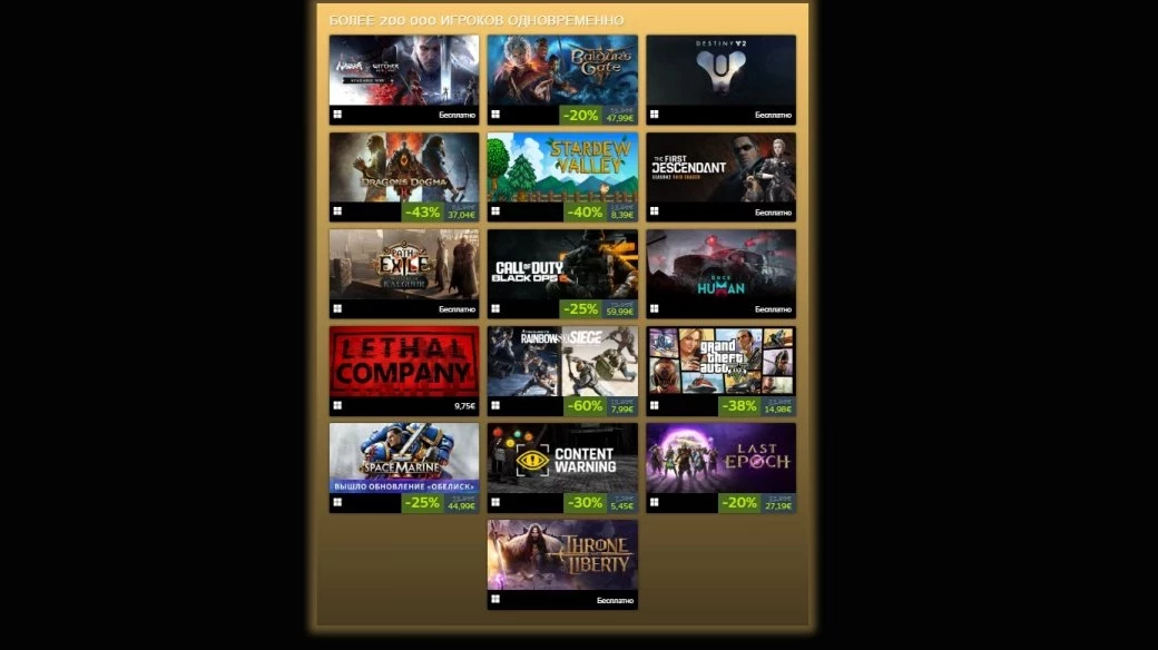 Платиновый список лучших игр года по числу одновременных игроков — более 450 тыс