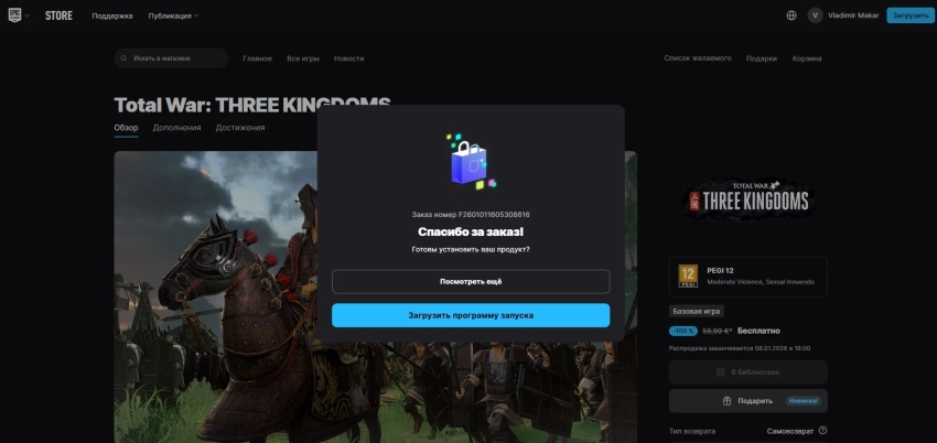 - стратегию Total War: Three Kingdoms (доступна в России на момент выхода новости, если заходить через VPN с EGS-аккаунтом из другой страны).