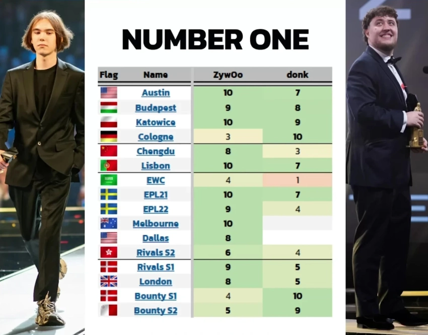 - Цифры: donk набил рейтинг выше, чем у ZywOo, на 10 турнирах 2025 года.