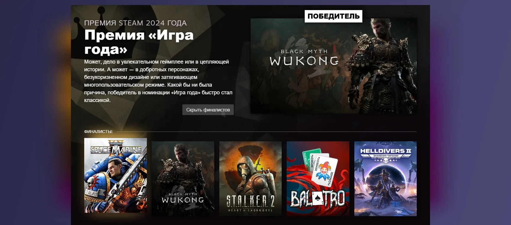 Полный список победителей The Steam Awards 2024