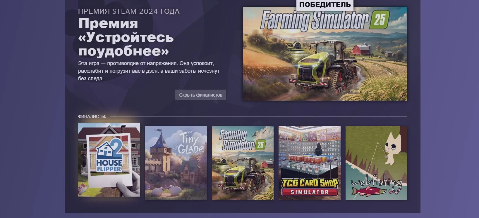 - Farming Simulator 25 — победитель!