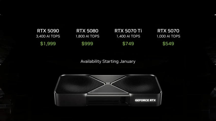 Старт продаж намечен на 30 января, когда на рынке появится RTX 5090, именно она и станет самой дорогой моделью (1999 долларов). В тот же день можно будет приобрести и RTX 5080 по цене в 999 долларов.