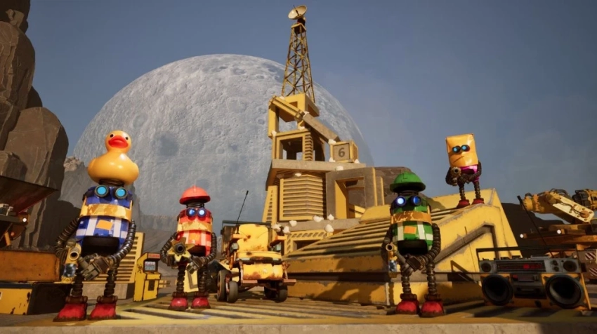 В арсенале роботов-строителей будет предостаточно инструментов. Реактивный ранец для полётов — самый банальный представитель снаряжения. В руки же получится взять Грави-Пушку или Пенно-Пушку. Эти и не только инструменты помогают перемещать материалы и усиливать конструкцию. Крупная техника лишь прибавляет хаоса — покататься получится, например, на Грави-Танке.
