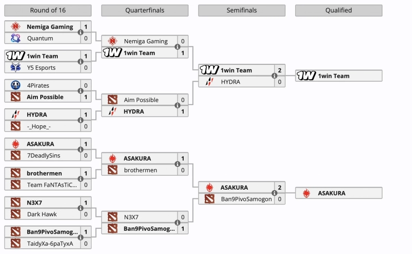 Первую квалификацию в Восточной Европе выиграли 1win Team и ASAKURA. В Западной Европе в закрытых отборочных примут участие Zero Tenacity и Night Pulse.