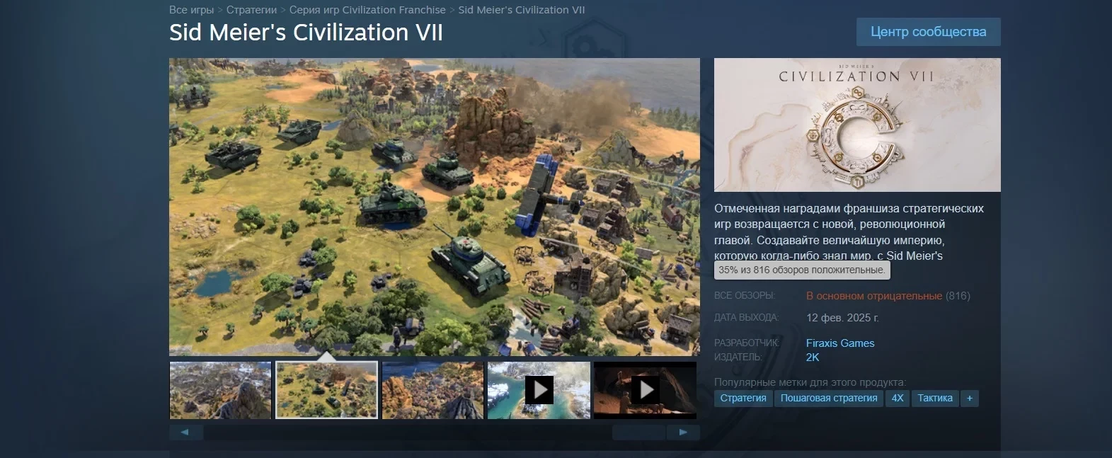 К сожалению, на PC — в Steam — стратегия получает много негативных отзывов. Её рейтинг одобрения составил всего 35% (на основе 816 обзоров).