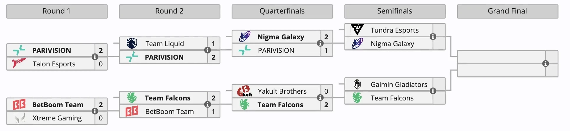 8 февраля Nigma Galaxy сыграет с Tundra Esports, а Team Falcons встретится с Gaimin Gladiators.