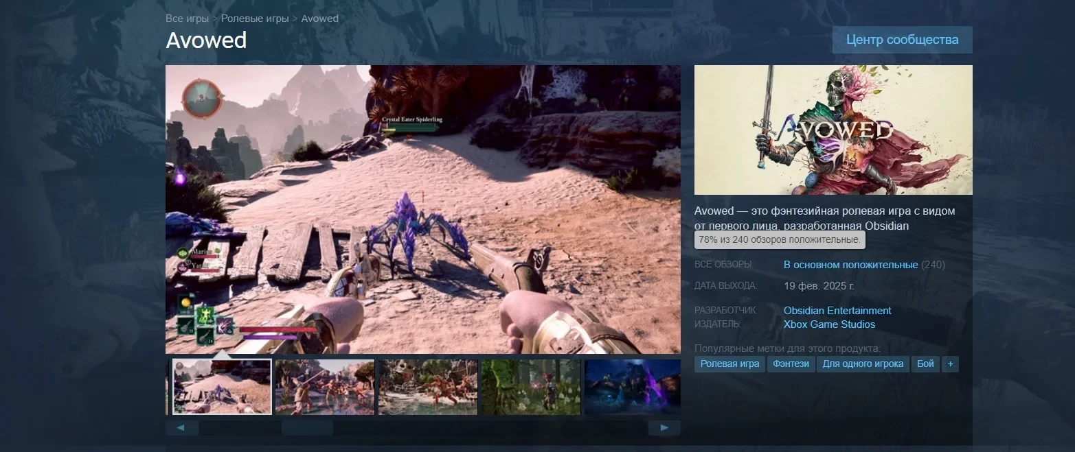 Полноценный релиз Avowed состоится 18 февраля на PC, Xbox Series и в Gampe Pass. В игре есть официальный перевод на русский язык (без озвучки).