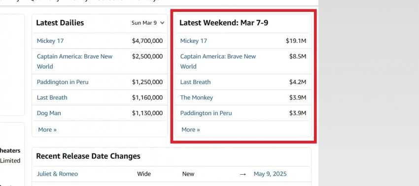 Свежий топ-5 кассовых сборов в прокате в США за период с 7 по 9 марта 2025 года: