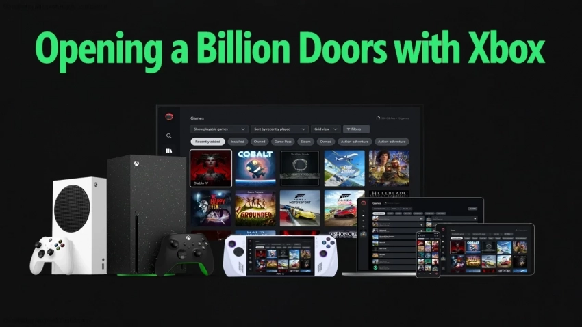 Речь идёт об изображении нового пользовательского интерфейса Xbox на разных устройствах, на котором, в разделе с играми, видно упоминание Steam.