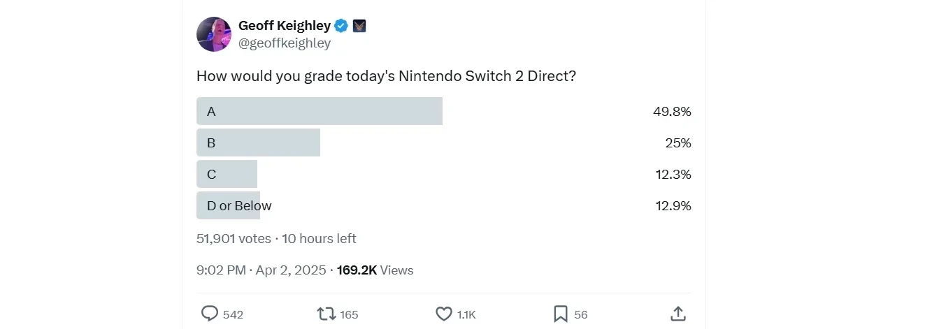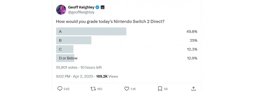 Геймерам нравится: Джефф Кили просит оценить презентацию Nintendo Switch 2 в голосовании