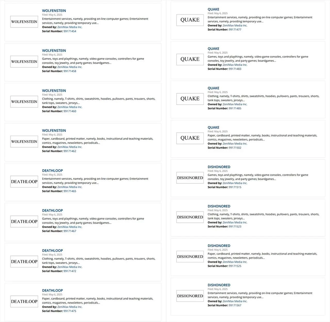 Отмечается, что ZeniMax не оформляла новых торговых марок с августа 2024 года. Остаётся надеяться, что глобальный пересмотр прав на популярные франшизы как-то связан со стратегиями их развития. Но пока что о новых играх серии Wolfenstein, Deathloop, Quake и Dishonored даже слухи не появлялись.