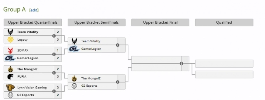 Уже отыграно несколько матчей в верхних сетках групп A и B, поэтому определись первые команды, прошедшие в полуфинал. Текущие результаты: