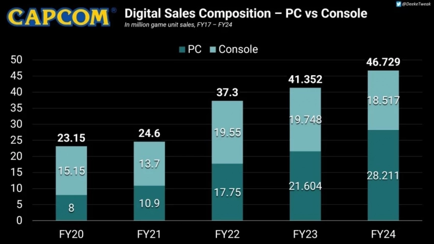 В целом же за прошедший год Capcom продала более 51 млн игр, что значительно превышает показатель 2023 финансового года в 46 млн.