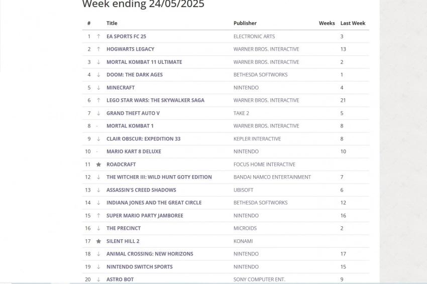 Топ-10 продаж видеоигр в Британии с 17 по 24 мая 2025 года