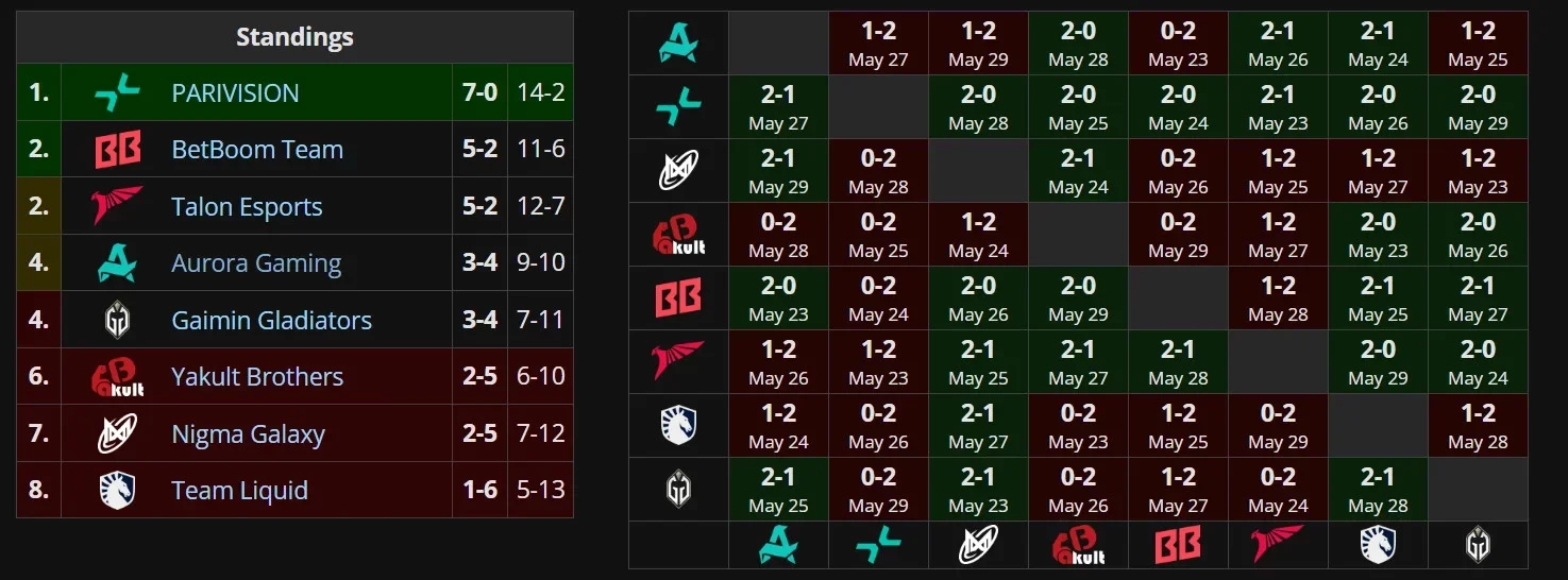 30 мая — очередной игровой день. В 15:30 по МСК в бою встретятся Talon и BetBoom, а в 18:30 сражаться будут Gladiators и Aurora. После этих матчей определится состав плей-оффа.