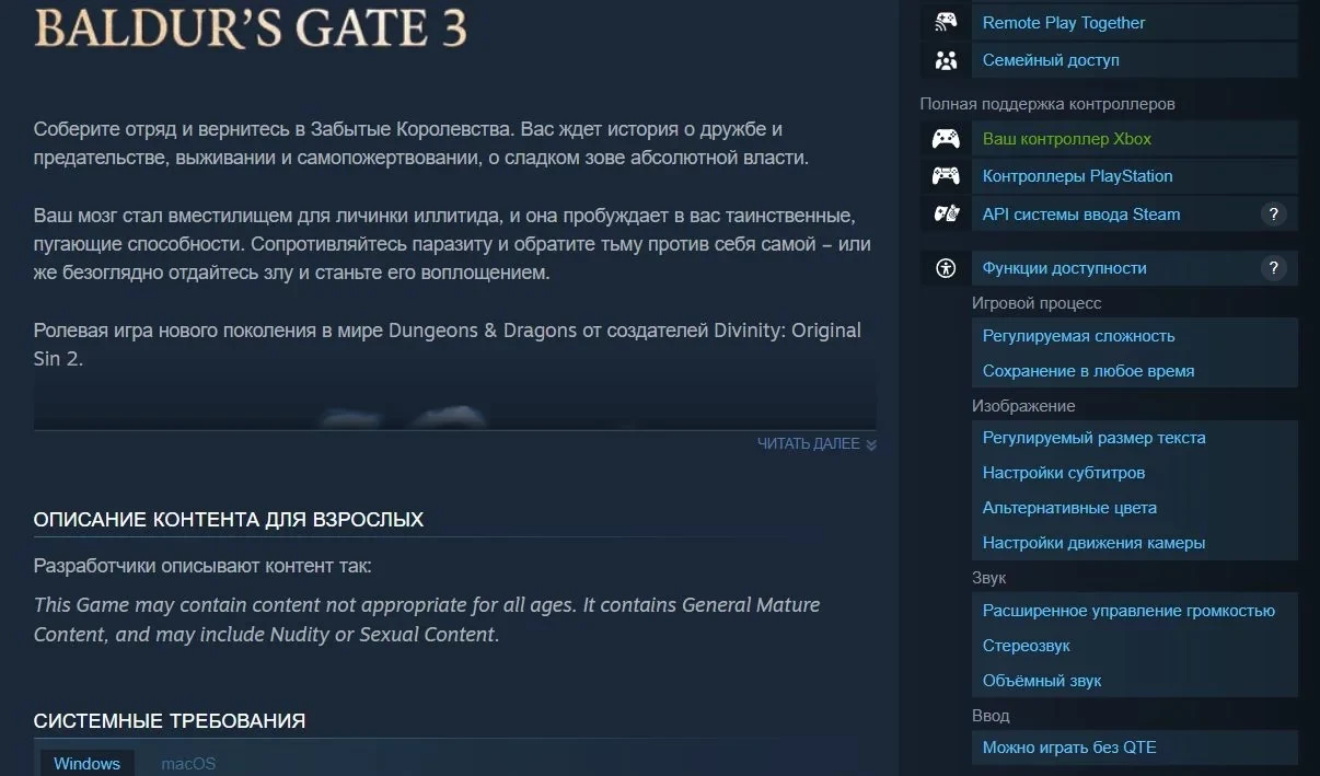 В настоящее время функции доступности уже видны на более чем пяти тысячах страниц игр в Steam, и со временем это число будет расти по мере того, как разработчики обновляют на них информацию.
