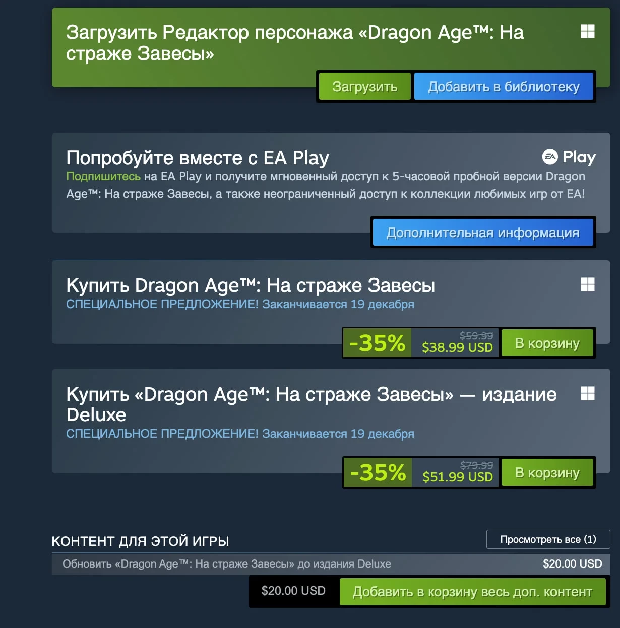 Стандартное издание новинки в Steam можно приобрести за 39 долларов (или евро, в зависимости от региона), а расширенное — за 52 доллара. Само предложение будет актуально до 19 декабря.