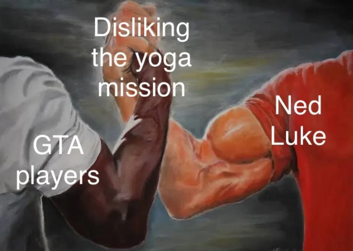 Естественно, такая реакция Люка породила различные шутки и даже мемы. Поклонникам GTA нравится знать, что в своей нелюбви к миссии они оказались не единственными. Остаётся лишь надеяться, что для доступной после прохождения задания мини-игре с йогой Неду не пришлось записывать дополнительные движения.