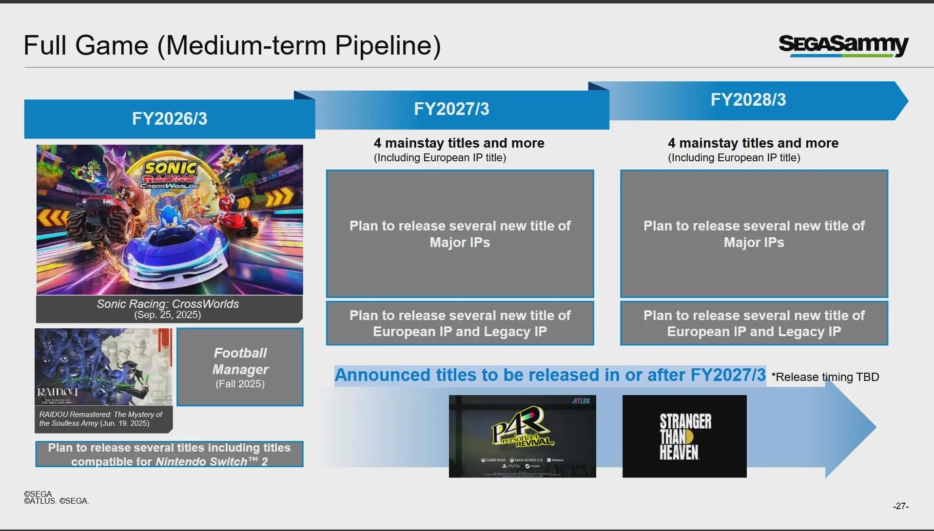 В том же отчёте SEGA раскрыла и планы на более близкий период. Уже в 2025 году выйдут Sonic Racing: CrossWorlds (25 сентября), а также очередная часть Football Manager (осенью). Кроме того, компания планирует выпуск нескольких игр, совместимых с Nintendo Switch 2.