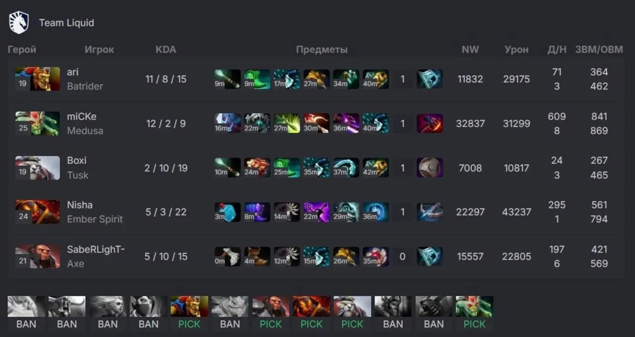 Team Liquid покинула турнир, заняв третье место и получив приз в размере 120,000. $ Теперь BetBoom Team предстоит сразиться с Gaimin Gladiators в решающем матче, который запланирован на 29 июня в 15:00 по московскому времени. Противостояние пройдёт в формате best-of-5, что обещает стать напряжённой битвой за чемпионский титул.