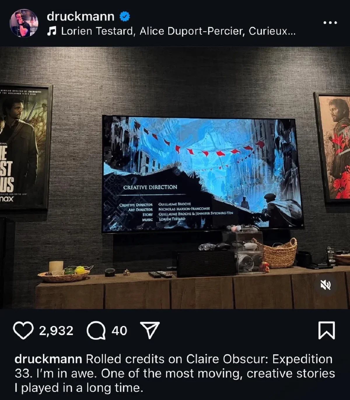 «Завершил Clair Obscur: Expedition 33. Я в восторге. Одна из самых трогательных и креативных историй в играх за долгое время».