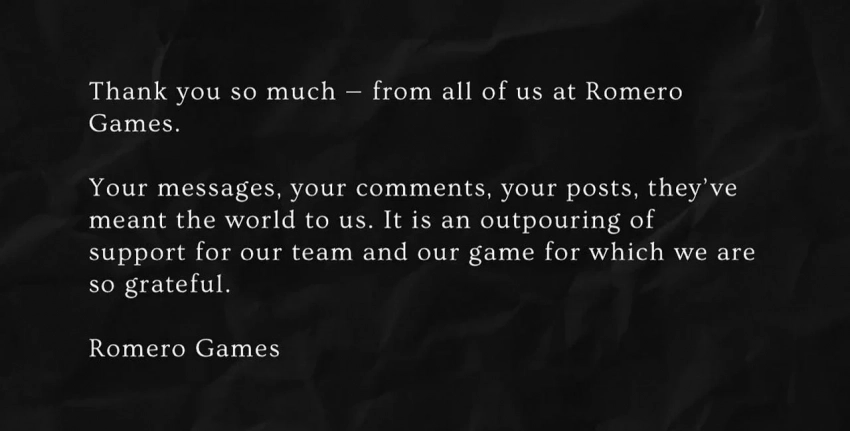 Ранее Romero Games опубликовала информацию о том, что лишилась финансирования от издателя. А позднее стало известно, что студия, судя по всему, закрыта. Это произошло на волне массовых сокращений в Microsoft.