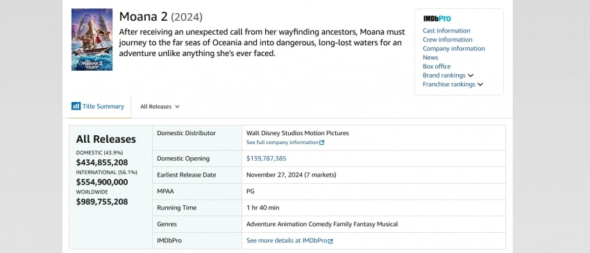 Таким образом, «Моана 2» стала ещё на шаг ближе к тому, чтобы собрать 1 млрд долларов и стать третьим релизом Disney в 2024 году, достигшим этой отметки.
