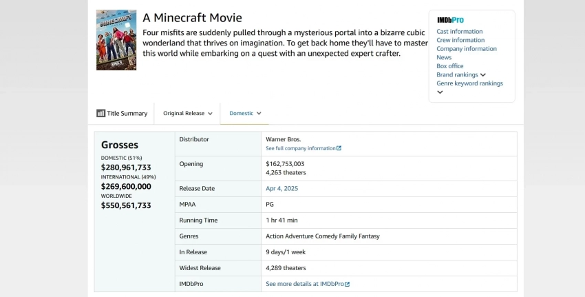 На пути к миллиарду: «Minecraft в кино» собрал в мировом прокате 550 млн долларов