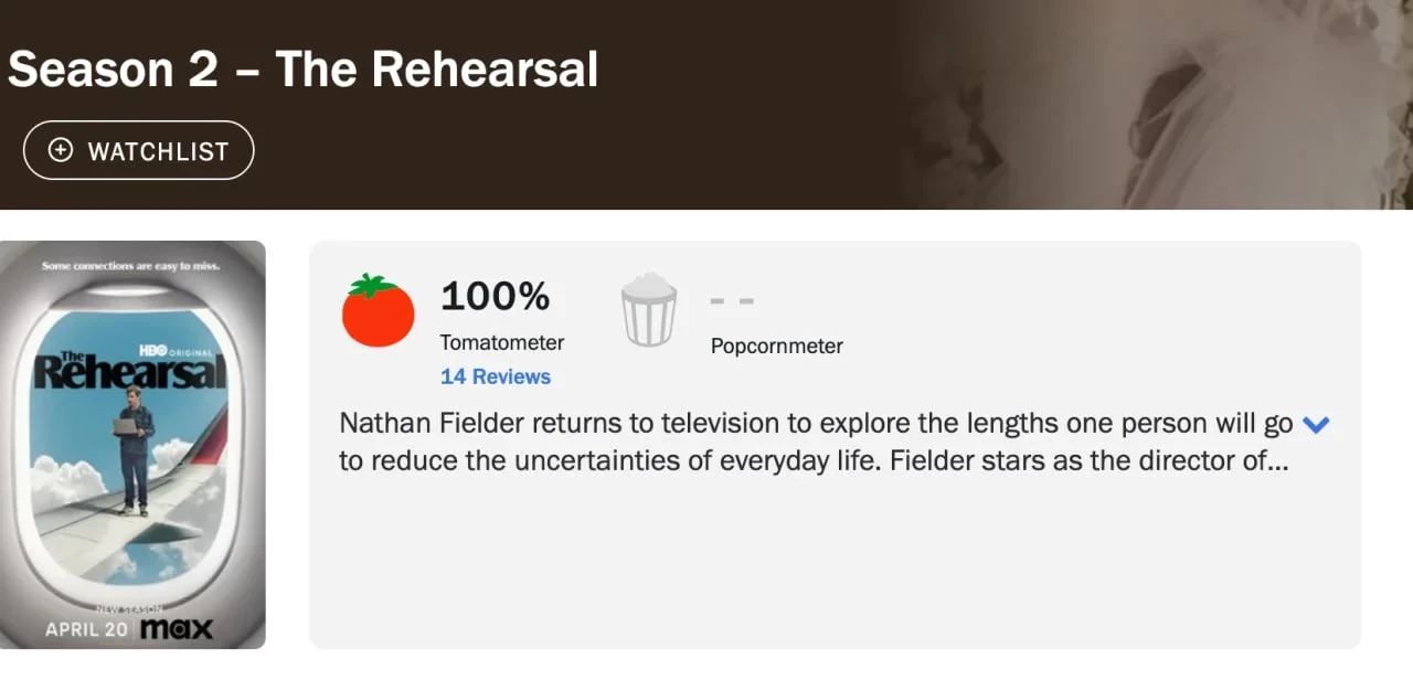Самое интересное о кино на YouTube канале Игромании!Обложка: кадр сериала «Репетиция»Второй сезон комедийно-документального сериала «Репетиция» получил высочайшие оценки критиков — на Rotten Tomatoes у неё него 100% «свежести» по мотивам 14 рецензий.
