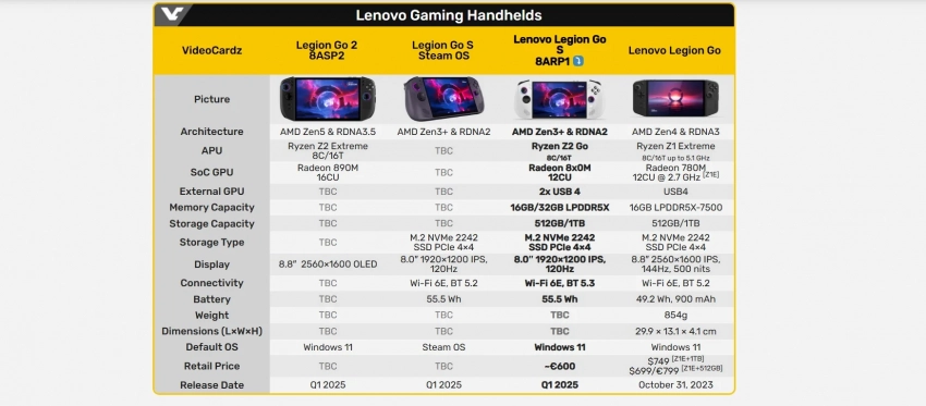 По слухам, Lenovo также собирается представить Legion Go 2 и Legion Go S на базе SteamOS. Последняя — это модель в серой цветовой гамме. А Legion Go S на базе Windows выполнена в белом цвете.