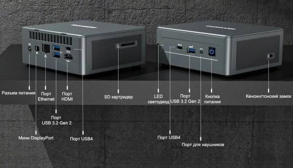 GEEKOM Mini IT11 оснащён двумя портами USB4 со скоростью до 40 Гбит/с, тремя портами USB 3.2 Gen2, видеовыходами HDMI 2.0 и Mini DisplayPort, сетевым портом Ethernet 1 Гбит/с и 3,5-мм аудиоразъёмом. Мини-ПК может выводить изображение на четыре экрана одновременно (по HDMI, mDP и USB4). Есть и поддержка Wi-Fi 6 и Bluetooth 5.2.
