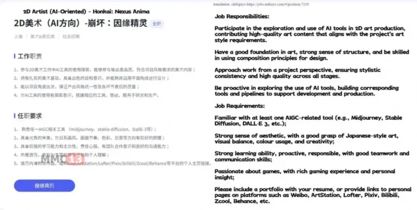 Кроме того, HoYoverse требует быть готовым к изучению и созданию ИИ-инструментов. Видимо, использование нейросетевых технологий планируют вводить на полноценной основе, а не в дополнение к базовой работе.
