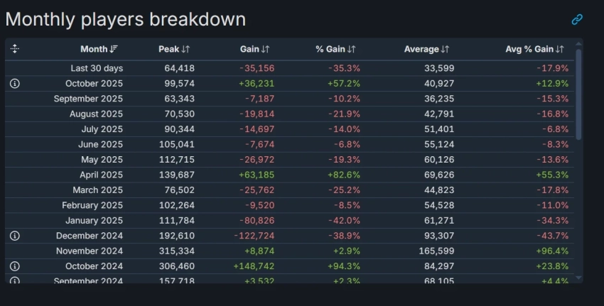 Да и в целом у Call of Duty в Steam не особо всё хорошо с онлайном в последние месяцы. В октябре, напомним, проходили акции с бесплатной игрой в Black Ops 6.