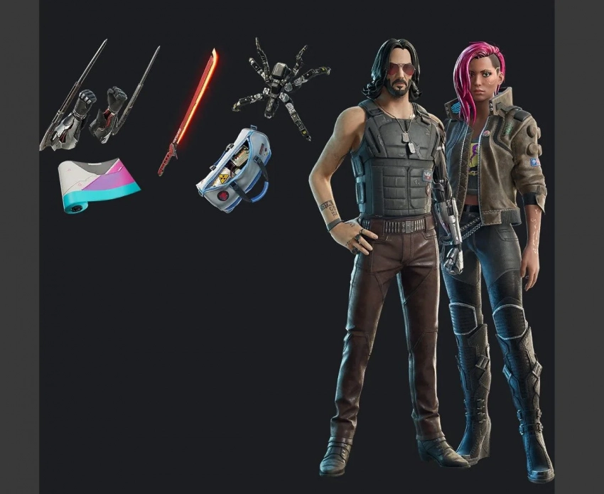 В ходе коллаборации Fortnite x Cyberpunk 2077 в игровой магазин попадут скины Ви и Джонни Сильверхэнда. Причём Ви будет представлять исключительно её женская версия, а мятежный рокер прибудет не только с гитарой и катаной, но и с самой настоящей бомбой, той самой, которую он притащил в Арасака-тауэр. Вдобавок персонажи смогут примерить знаменитые «Клинки богомола».
