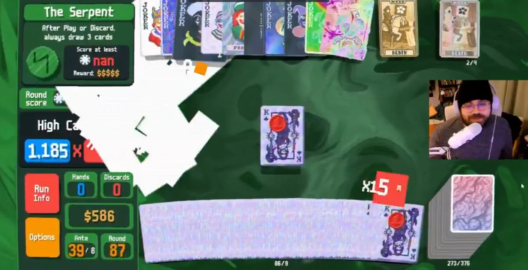 Прежде чем идти дальше, стоит отметить интересный факт о Balatro, который геймеры смогли выяснить лишь недавно. У рогалика есть «конец игры», прямо как у Tetris. В бесконечном режиме нужно добить 1.8e308 (огромное число) очков. После этого в Balatro начинают происходить визуальные баги, а очки отображаются подписью nan вместо цифр.