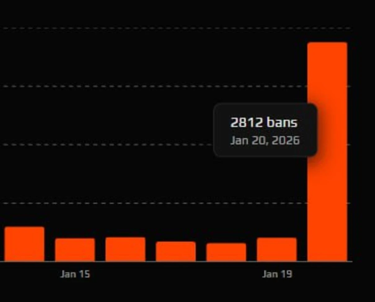 - Ban Evasion (Обход блокировки): Абсолютное большинство — 2 434 бана. Это пользователи, которые пытались играть с новых аккаунтов, имея активный запрет на основных.