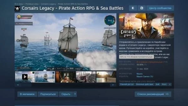 Напомним «Наследие Корсаров» вышла в раннем доступе Steam вчера, 31 января, и стоила на запуске 1990 рублей. С тех пор игра получила чуть более 100 отзывов, но большинство (62 %) из них отрицательные.
