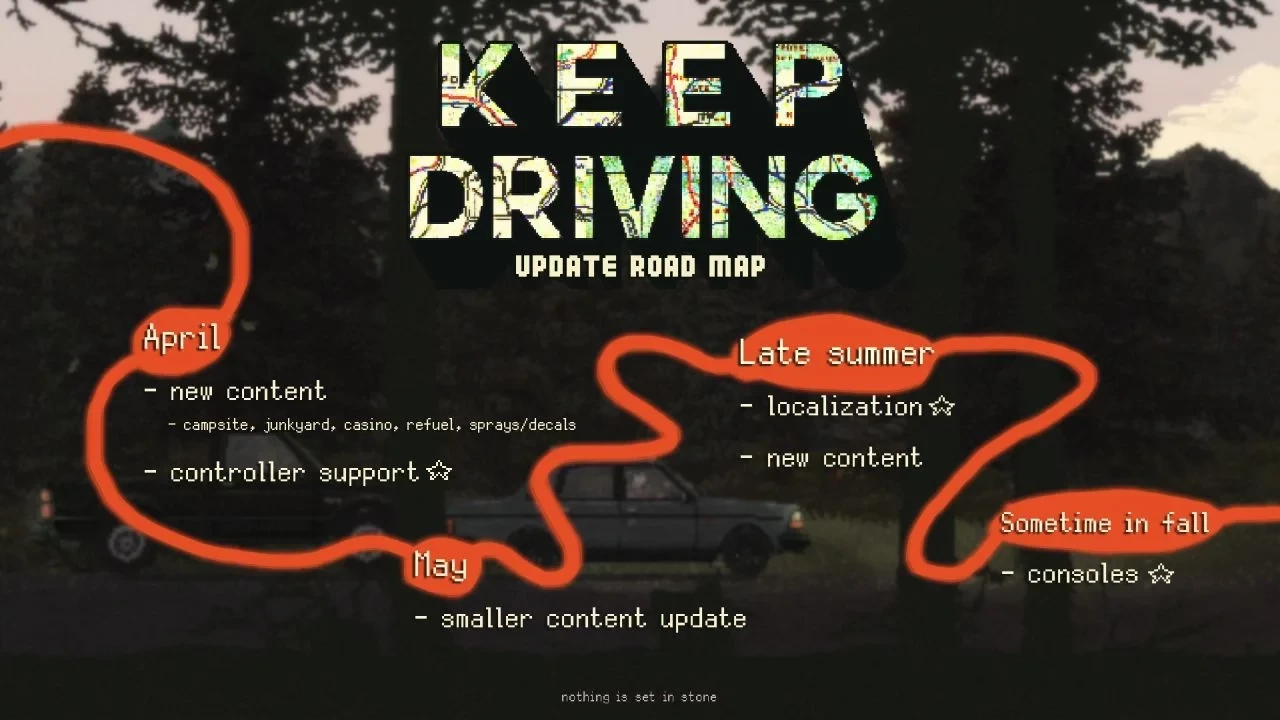 Самое интересное о кино на YouTube канале Игромании!Скриншот Keep DrivingВ феврале независимая студия YCJY Games выпустила в Steam атмосферное автомобильное ретро-приключение Keep Driving. Игроки приняли его очень положительными отзывами, и теперь разработчики рассказали о своих планах на 2025 год.