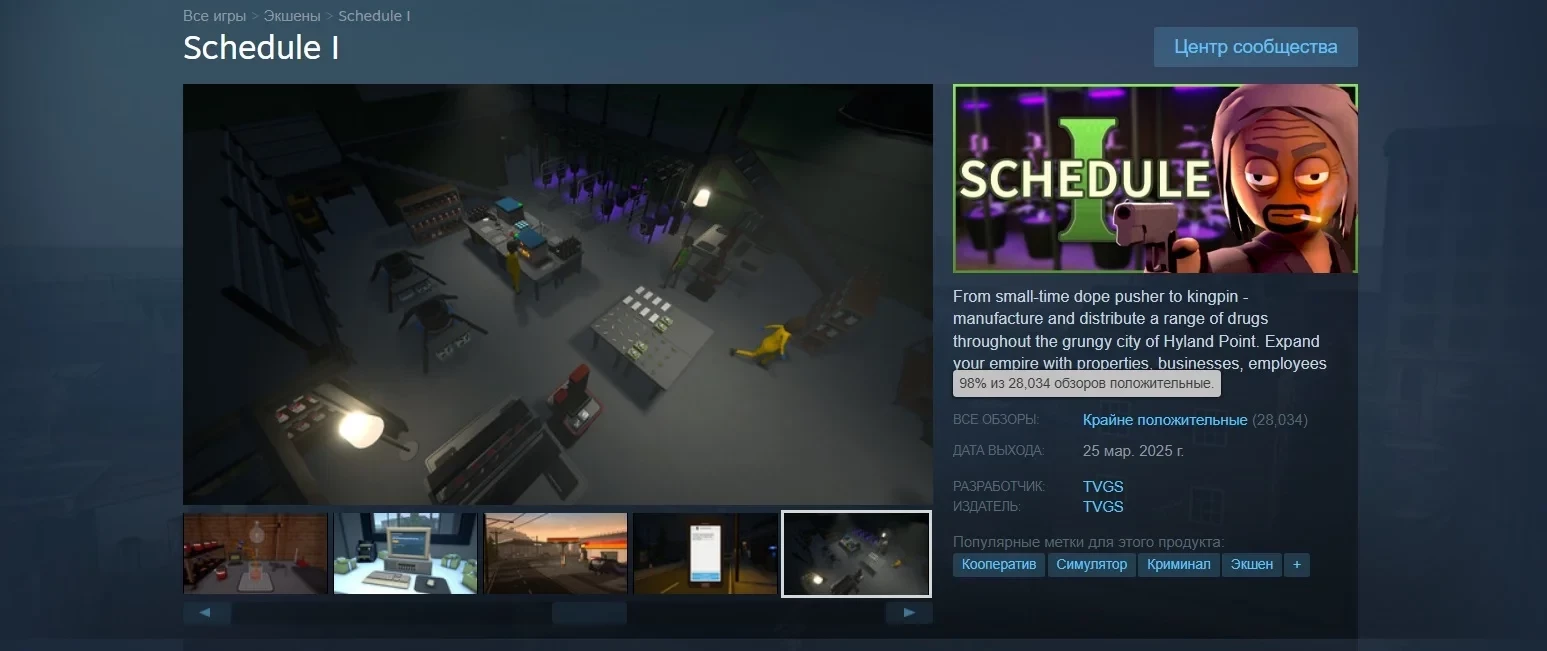 Главные новости » Все об играх » Schedule I в духе «Во все тяжкие» привлекла в Steam более 400 тыс игроков одновременно