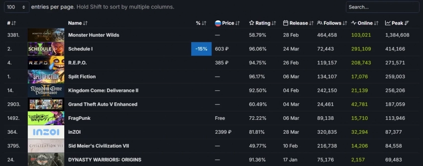 Это позволило Schedule I забралась в топ-3 самых популярных релизов в Steam в 2025 году, обойдя R.E.P.O. (пиковый онлайн 271 571), Split Fiction (пиковый онлайн 259 003) и другие тайтлы.