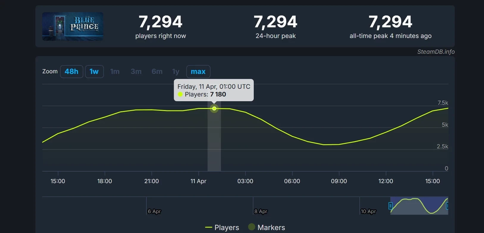 Что касается пикового онлайна, то в момент написания новости он составил 7294 человека. Рекорд в 7180 единовременных игроков был побит спустя сутки после релиза. Сарафанное радио и наступление выходных в деле!