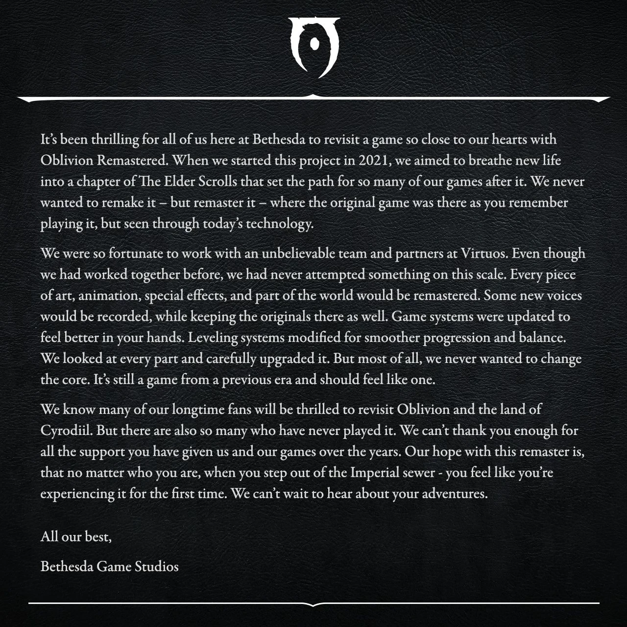 Ещё больше интересных видео на YouTube канале Игромании!Скриншот The Elder Scrolls 4: OblivionСегодня подтвердились давние слухи: компания Bethesda не только признала существование обновлённой версии The Elder Scrolls 4: Oblivion, но и объявила о её релизе. А в специальном обращении компания разрешила давний спор: хотя классическая игра воссоздана с нуля на новом движке, её всё же назвали ремастером.