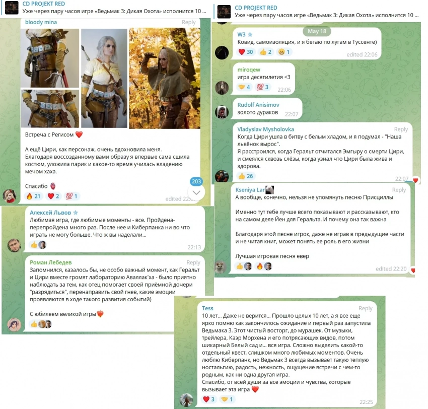Спасибо, что вы всё ещё с нами. Спасибо за вашу любовь и интерес. И спасибо за все добрые воспоминания, которые вы нам подарили», — написали в CD Projekt Red.