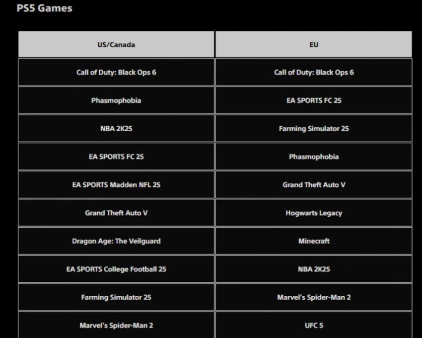 Кроме того, в рейтинге для PS5 уверенно себя показали Phasmophobia, EA Sports FC 25 и Grand Theft Auto V. А по PS4 в лидерах также находятся EA SPORTS FC 25, Need for Speed Heat и Red Dead Redemption 2.