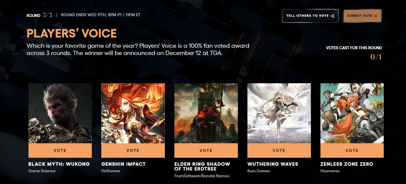 В финале голосования «Выбор игроков» на TGA 2024 сойдутся Black Myth: Wukong и Elden Ring Shadow of the Erdtree